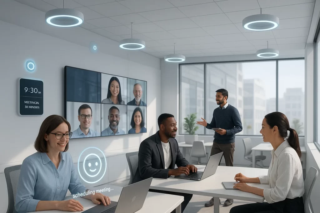Use desk booking software, a meeting room booking system, hybrid work software, and integrated project management tools to coordinate people, space, and schedules.