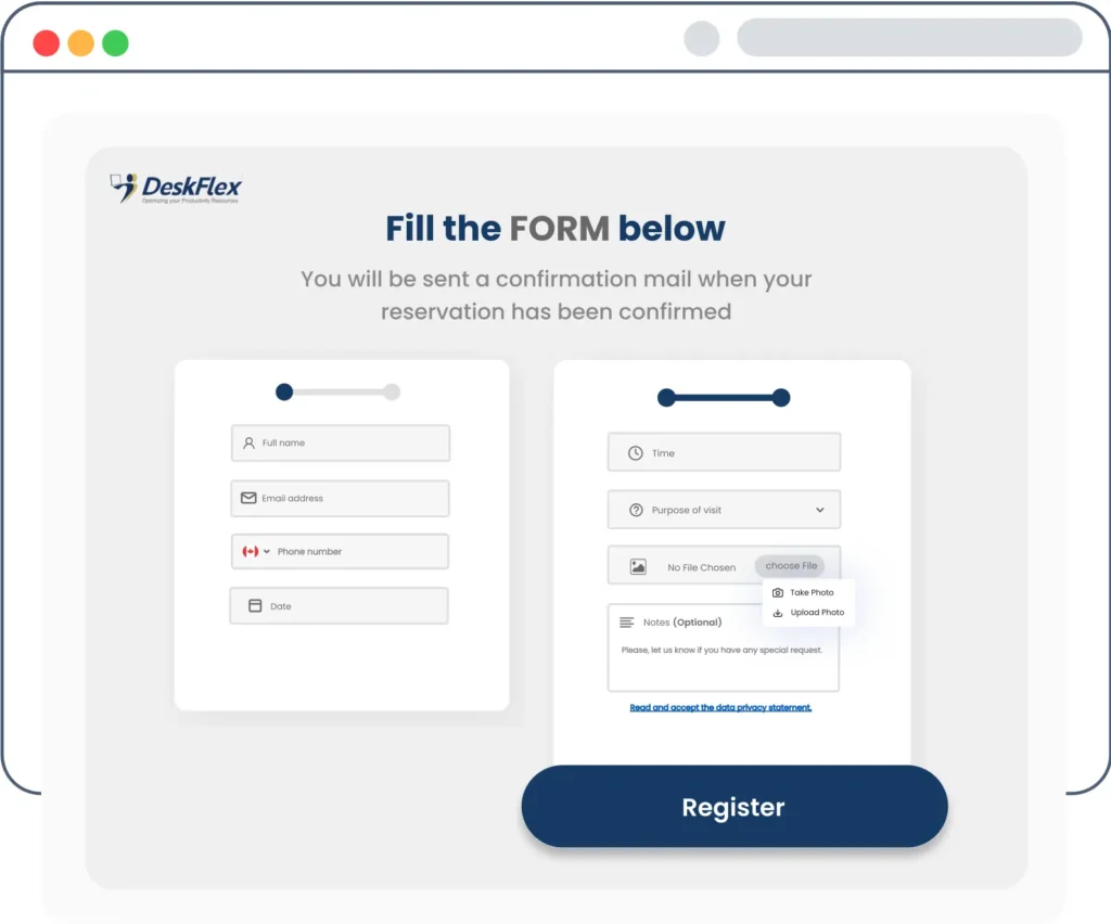 Our visitor booking system provides unique solutions that improve security and monitor who enters and exits your facility. DeskFlex office visitor management system allows businesses to manage and streamline more than just space but also security.